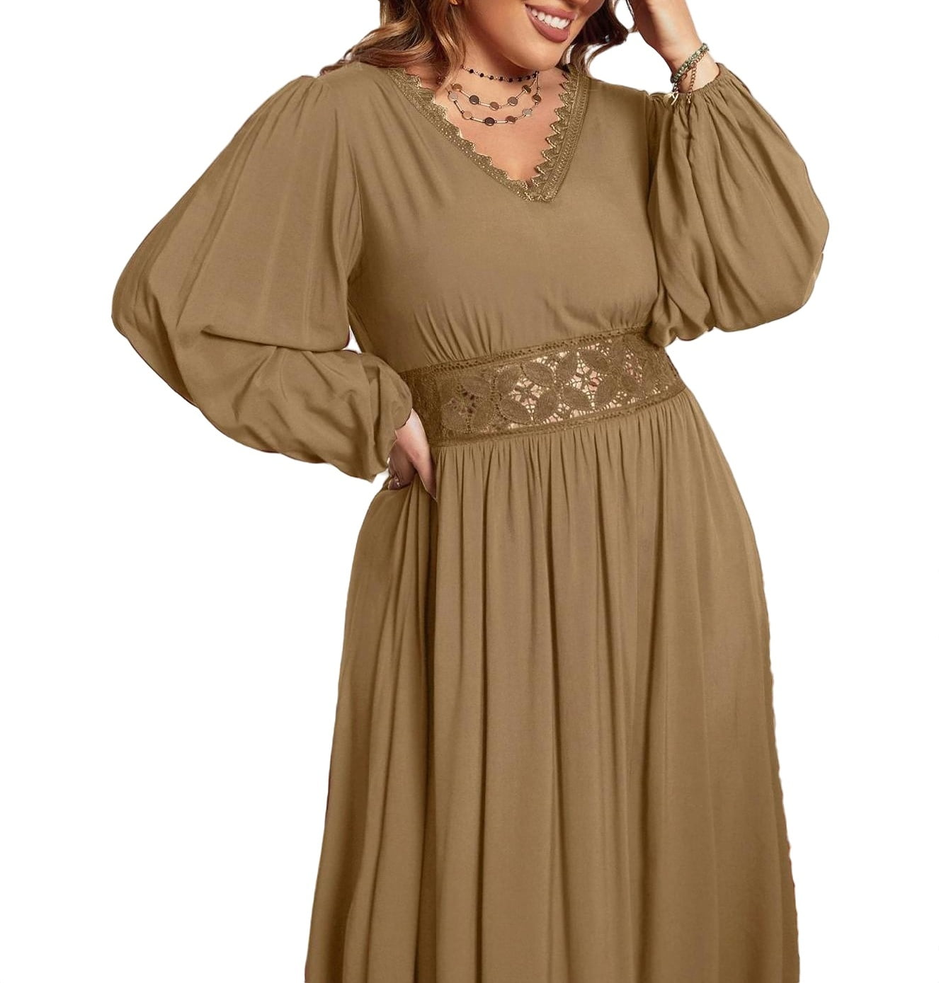 Boho V Neck A Line Dress Long Sleeve Rust Brown Plus Size Dresses Women S Walmart Com